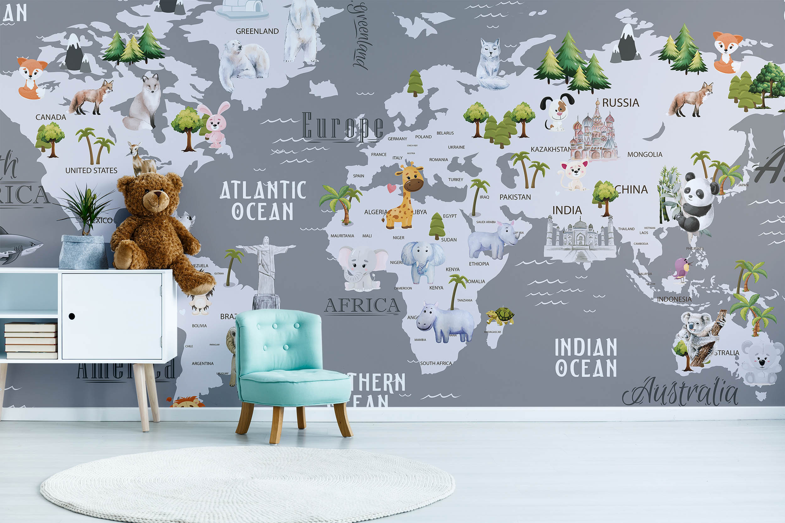 - Tapeta Mapa se zvířaty dětská